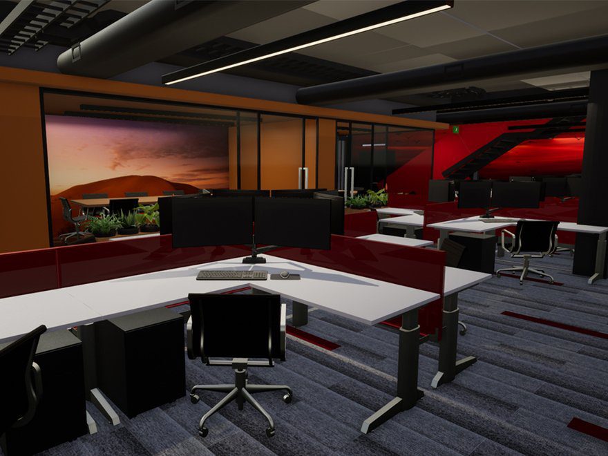 Located adjacent the main engineering workshop, the building houses over 80 technical staff over 2 levels. Meeting rooms and office spaces are located to inner edges, with workstations grouped into relevant teams, each with excellent natural light and direct views to outside.