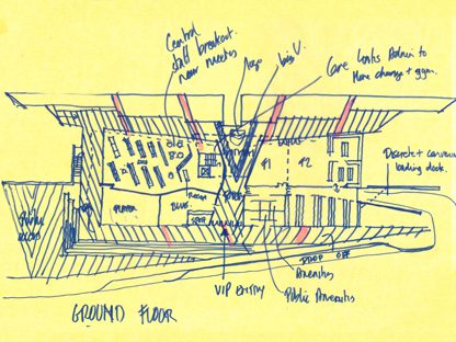 Illustrated below are diagrams that demonstrate our design approach, resolving client brief requirements and tailoring to the specific site opportunities in a way that highlights its significant status as a national sports academy. Several options are considered before arriving at the best solution.