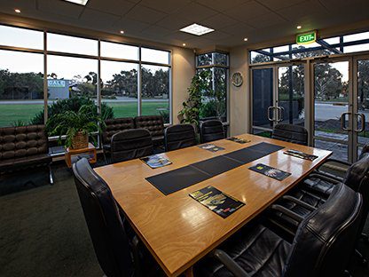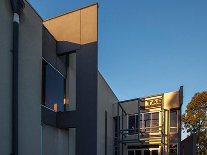 Use of colour and the articulation of blade-like elements provide a strong corporate image for the international firms Head office and Production facility.