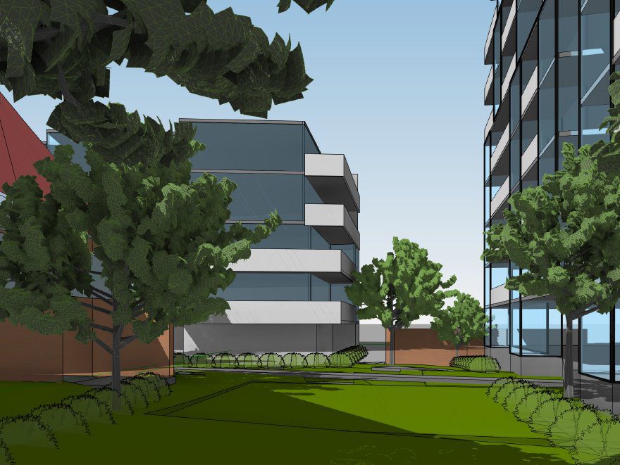 Cars are discretely concealed in a basement shared with a neighbouring residential development.