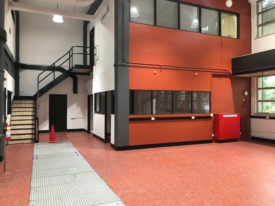 The Central Hall’s industrial aesthetic was reinforced with a dramatic choice of colours, finishes and light fittings. Adjacent specialised rooms with specific technical requirements were also improved to enhance the learning experience.
