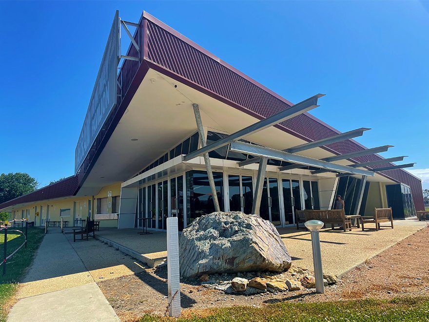 A strong community focus is encouraged with a strong design response that invigorates this rural area and unites the community. Expressed as an eroded object, the building form is cut away to provide covered seating and viewing areas that overlook the adjacent oval and also look towards the northern views to the Tarra Bulga National Park.